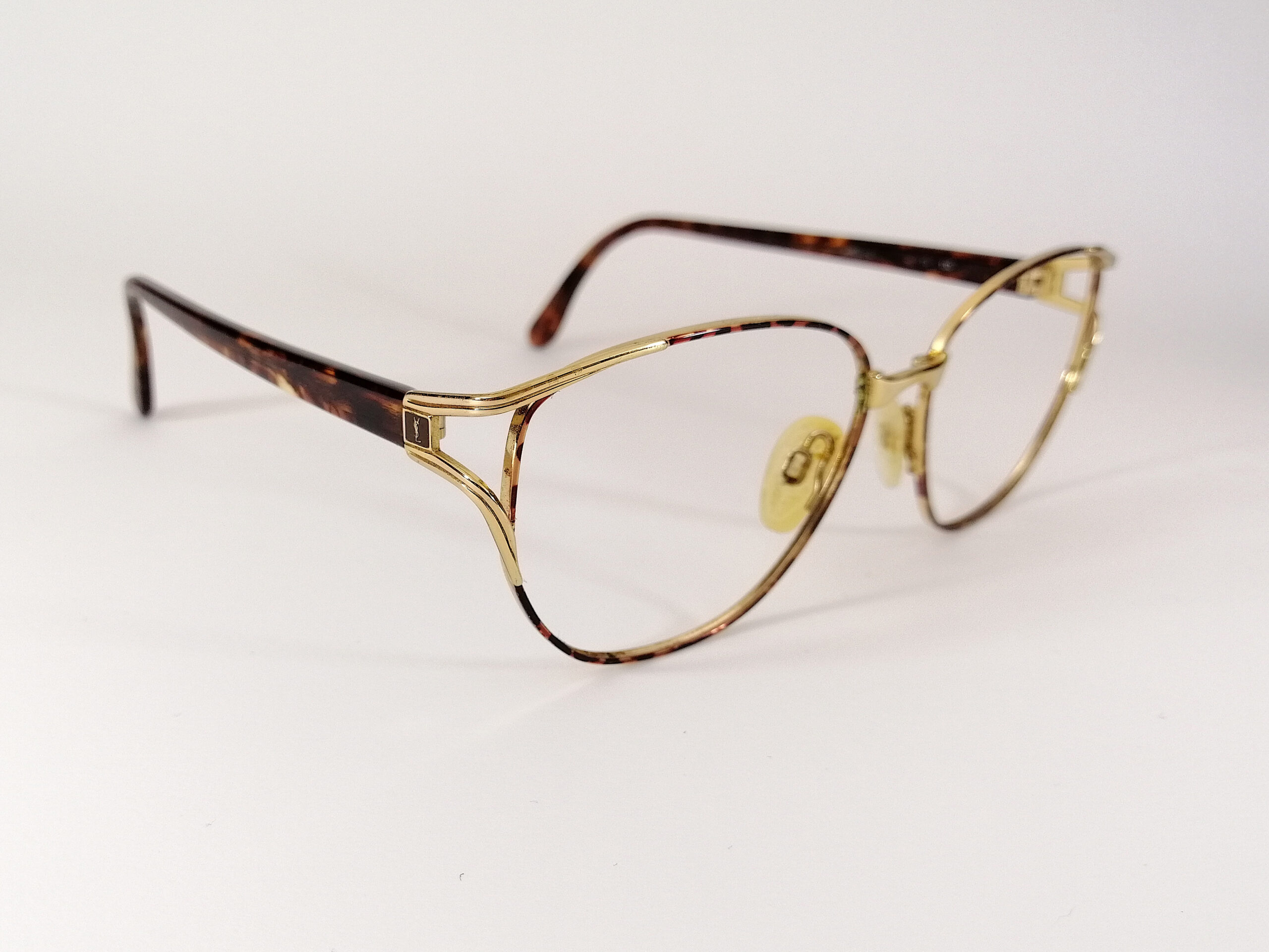 Der Rahmen der Brille ist aus Kunststoff und Metall in goldener und brauner Farbe mit Muster wie abgebildet und mit Farboptik in glänzend.