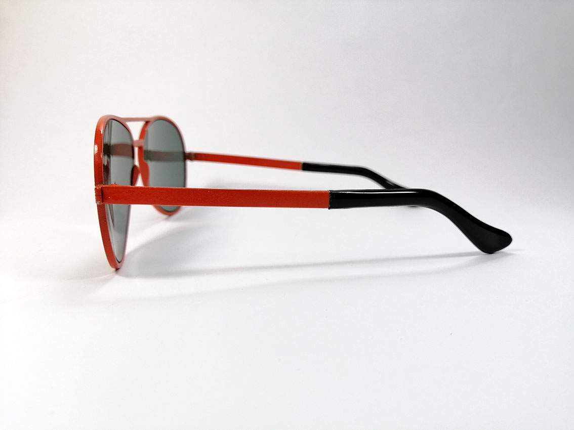 Der Rahmen der Brille ist aus Metall in roter Farbe und mit Farboptik in matt.
