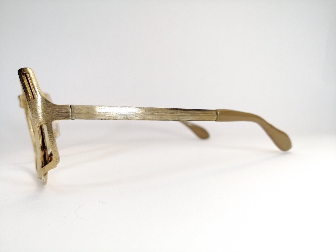 Der Rahmen der Brille ist aus Metall in goldener Farbe mit Muster wie abgebildet und mit Farboptik in matt und glänzend.