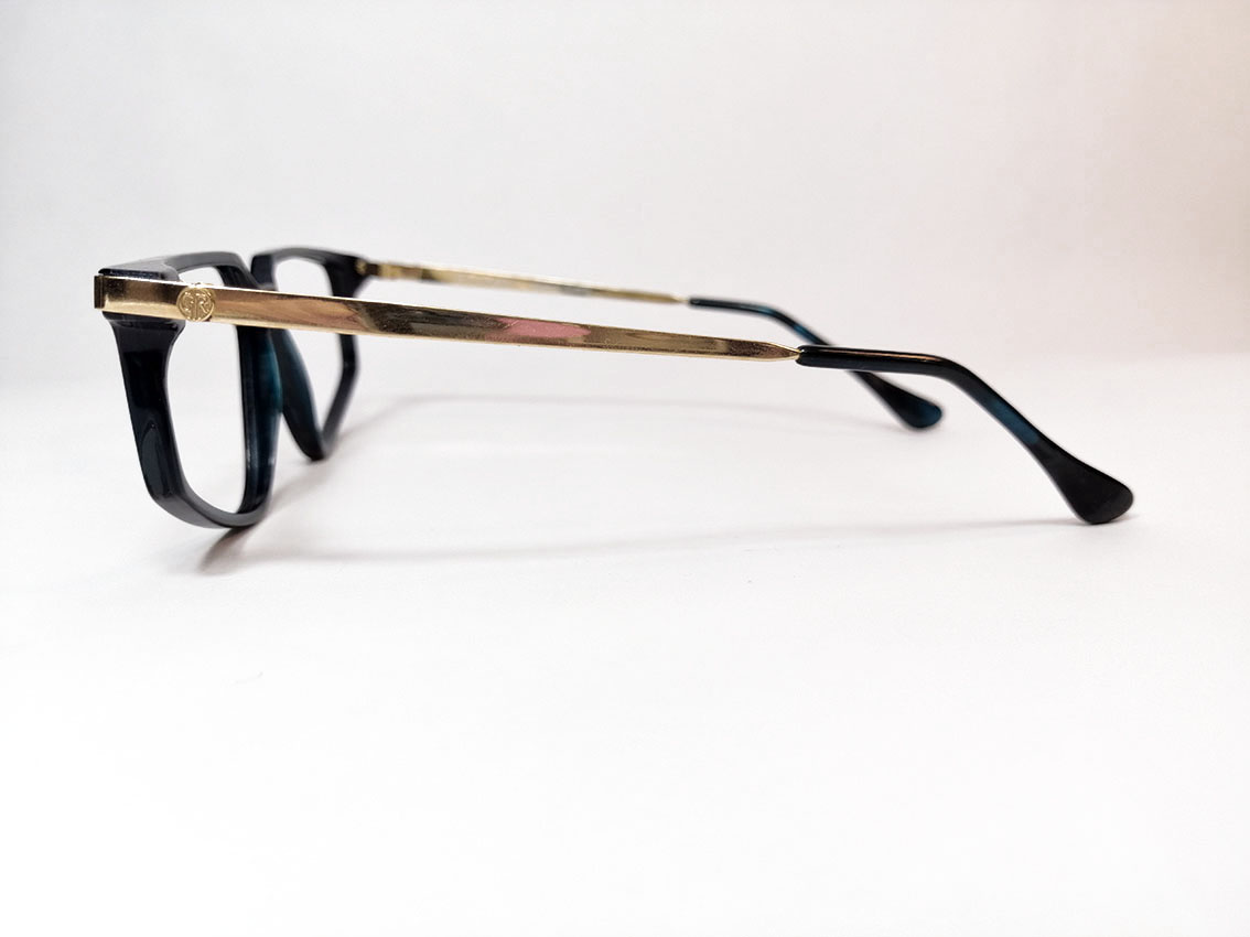 Der Rahmen der Brille ist aus Kunststoff und Metall in türkiser/ grauer und goldener Farbe mit Muster wie abgebildet und mit Farboptik in glänzend.